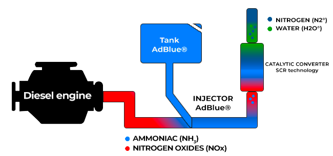 It causes the decomposition of exhaust particles produced by the catalytic converters of diesel engines, which are harmful to the environment. Its use in vehicles equipped with SCR technology helps maintain compliance with the European Union’s Euro 4, 5 and 6 exhaust gas standards.